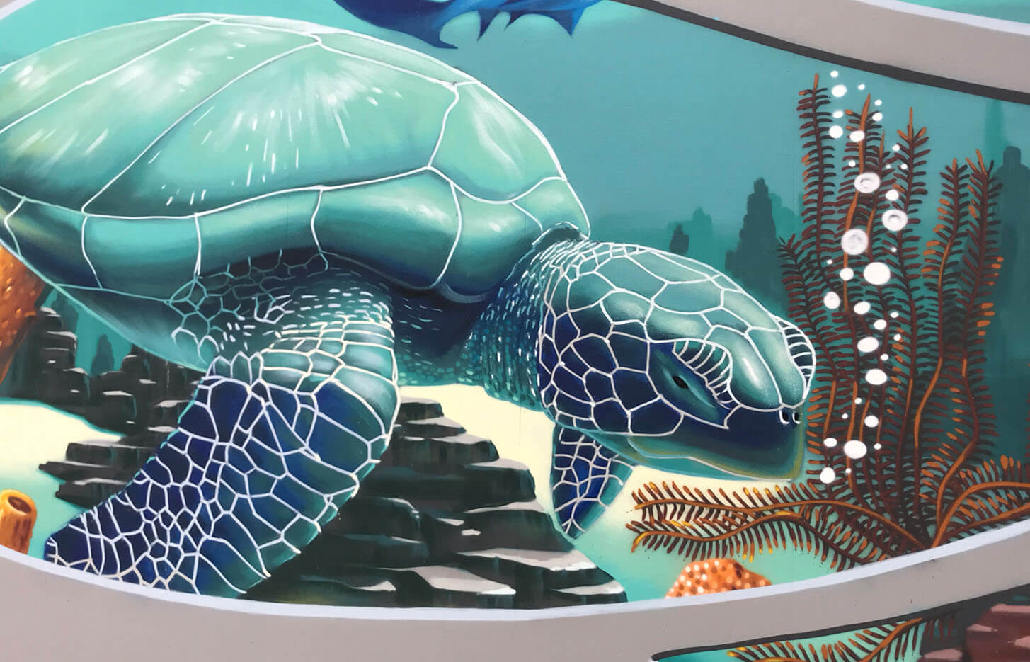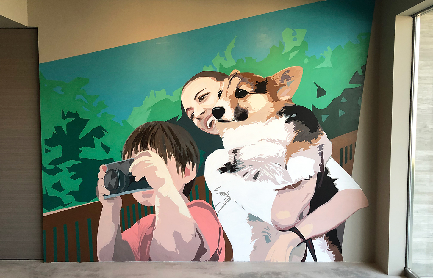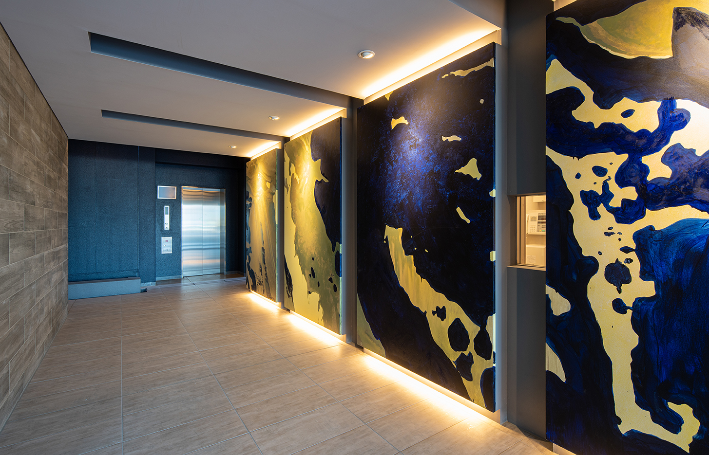 上記のような取り組み以外に、ビル一棟分の壁面をペイントした大規模な作品からシャッターや内装に至るまで様々な壁面に施工しています。作業現場も新築と改装、または現在使われているものや通常営業の合間といった具合に状況も様々です。天候に悩まされることもあれば、壁面が汚れてしまって補修や洗浄が必要な場合もあります。外壁は直射日光や雨、風、埃、排気ガスなどに晒されているため見た目以上に汚れや劣化が酷く作業環境は常に何かしら問題を抱えています。私たちは現場でそれらの問題を事前に予測しながら、不測の事態が生じても即座に対応し、元の壁面の状態がどうであれ、アーティストの作品が美しく鮮やかな状態で残るよう様々な工夫を施します。