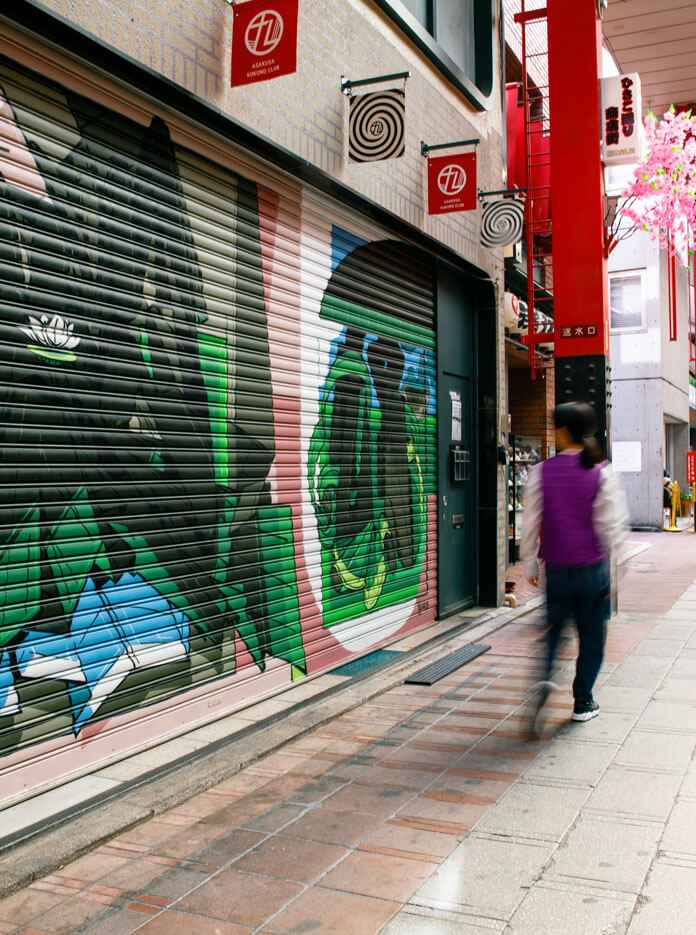 アーティストが制作するために必要な情報や環境作りも重要な仕事の一つです。依頼主とアーティストの間に立ち、依頼主の要望を満たしながらアーティストの自由な表現と発想が生まれやすい状況を作ることはディレクションにおいては非常に重要な側面と言えます。故に1つ1つの作品の裏には様々なストーリーやドラマがあります。まだまだ数は少ないですが彼らの描いた壁画を巡れるように座標を記載しました。実物の作品の目の前で、そのエネルギーを感じ取ってください。