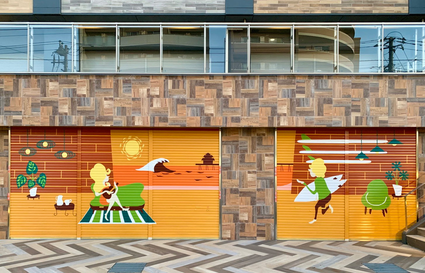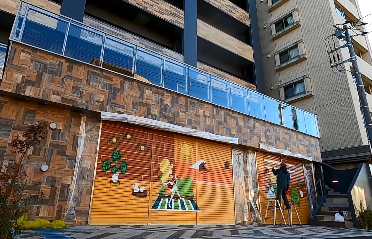 若くて新しい街の発展と昔ながらの景色を残す街の真ん中に、美しい自然と寄り添い合える次世代を育てる人たちの豊かな暮らしを想うきっかけを絵描いた作品。